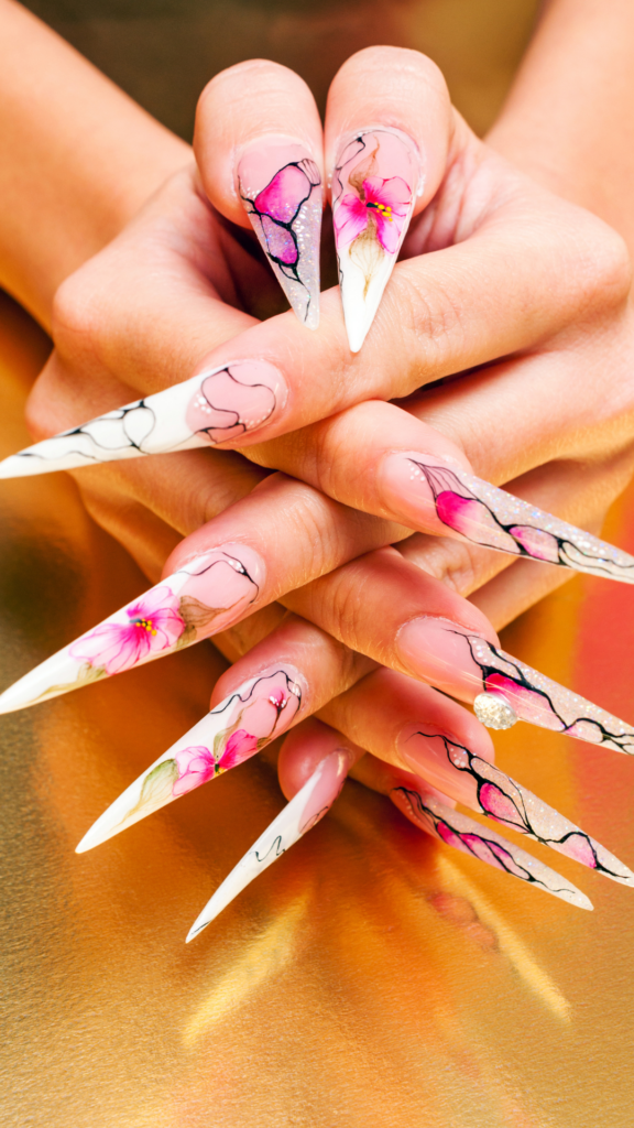 17 Floral Art with Stiletto Tips