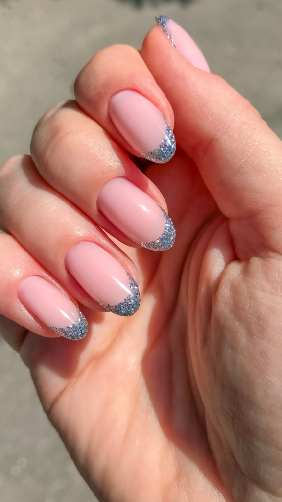 28 Glitter French Tips on Soft Pink